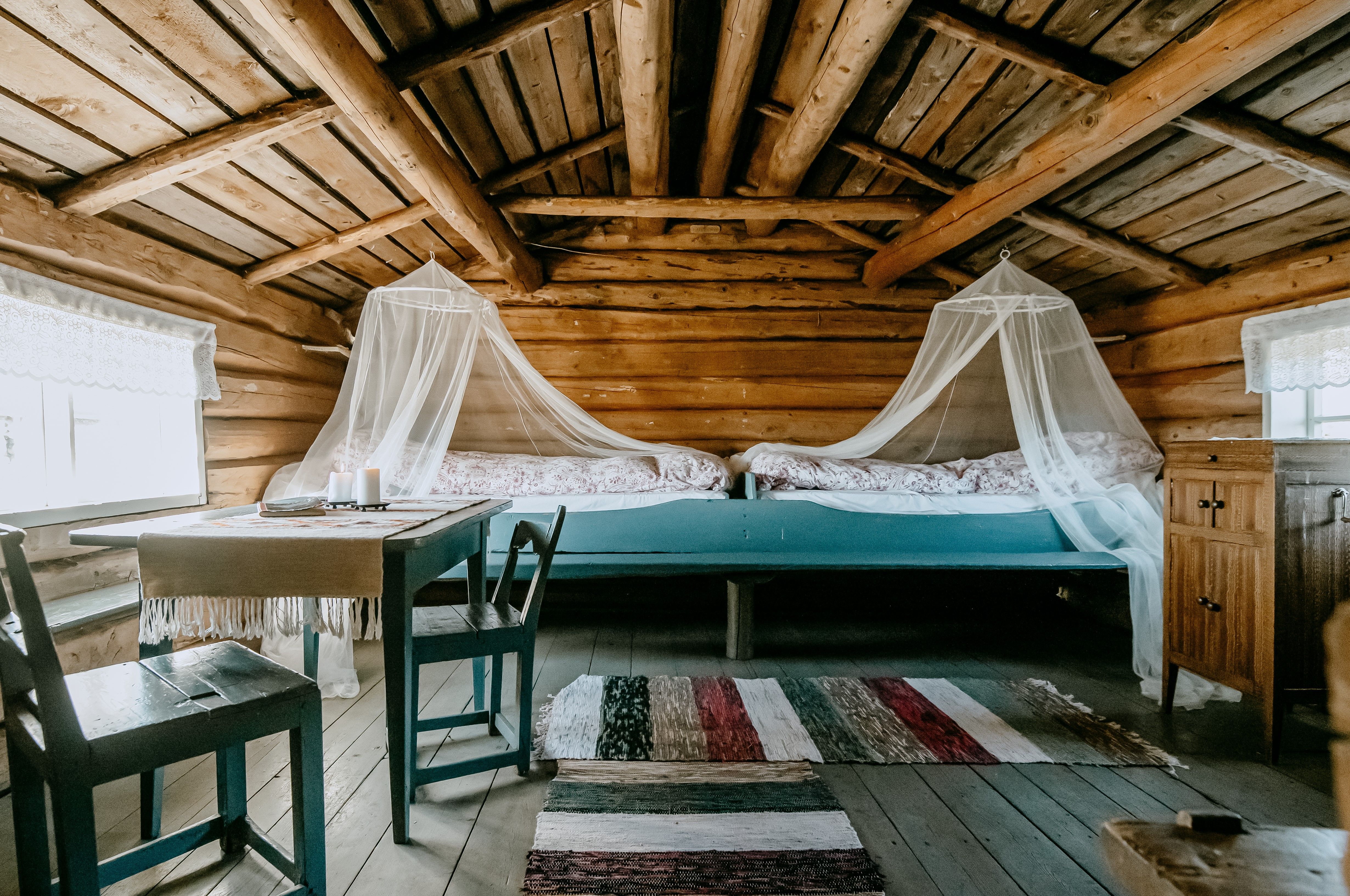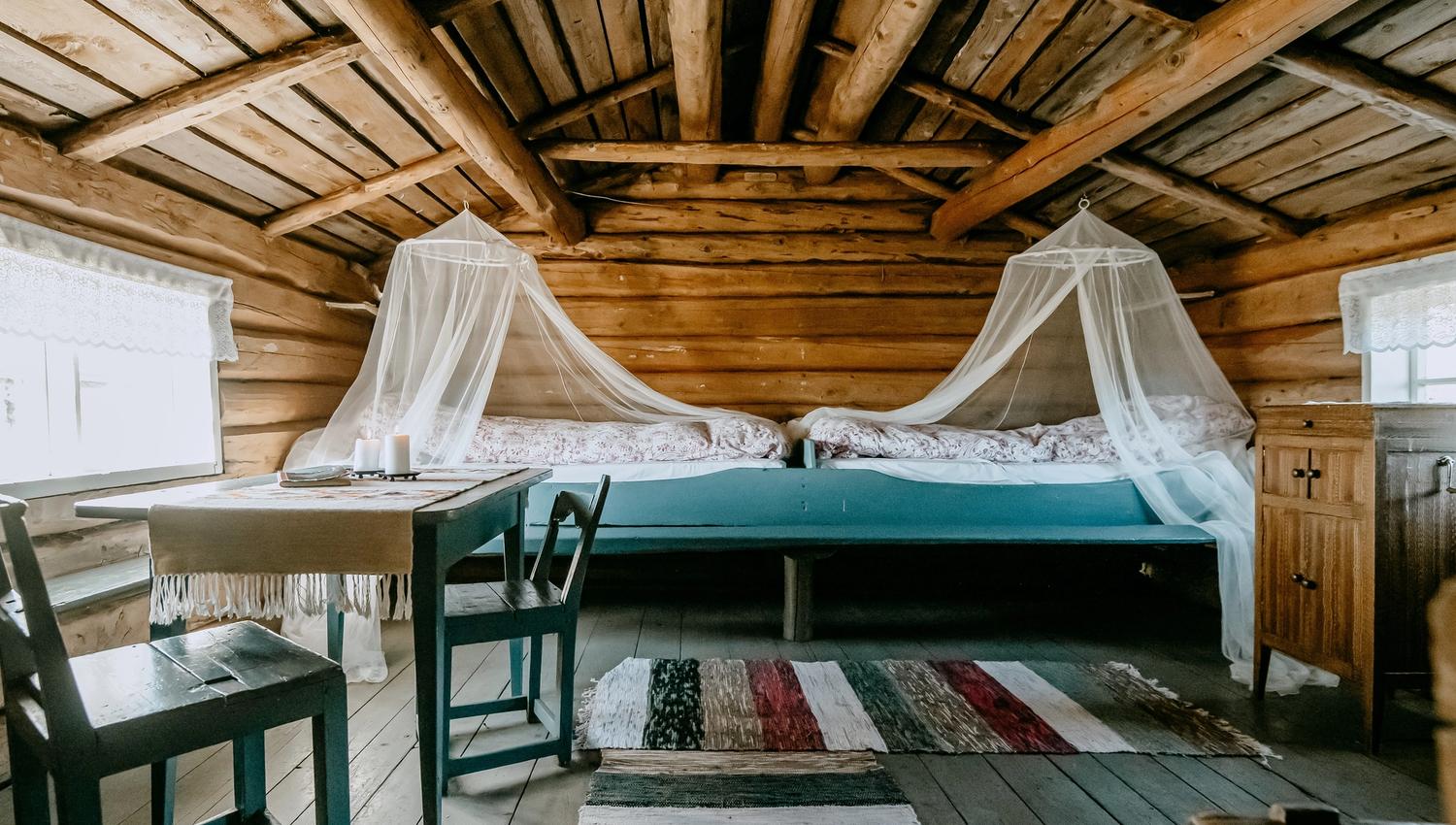 Vi har innredet en fjøs-suite med to enkeltsenger, og Inne i selve seterhuset er det to brisker som kan brukes til senger dersom det er ønskelig. Her er det god plass til en familie eller to-tre vennepar. Dette er en gammel bygning fra midten av 1800-tallet. Det er ikke gjort noen med denne bygningen siden midten på 1900-tallet, så her lever man slik seterjenta gjorde da de fremdeles drev med setring her. Her er det lavt unner taket, enkle fasiliteter og en god dose sjarm.