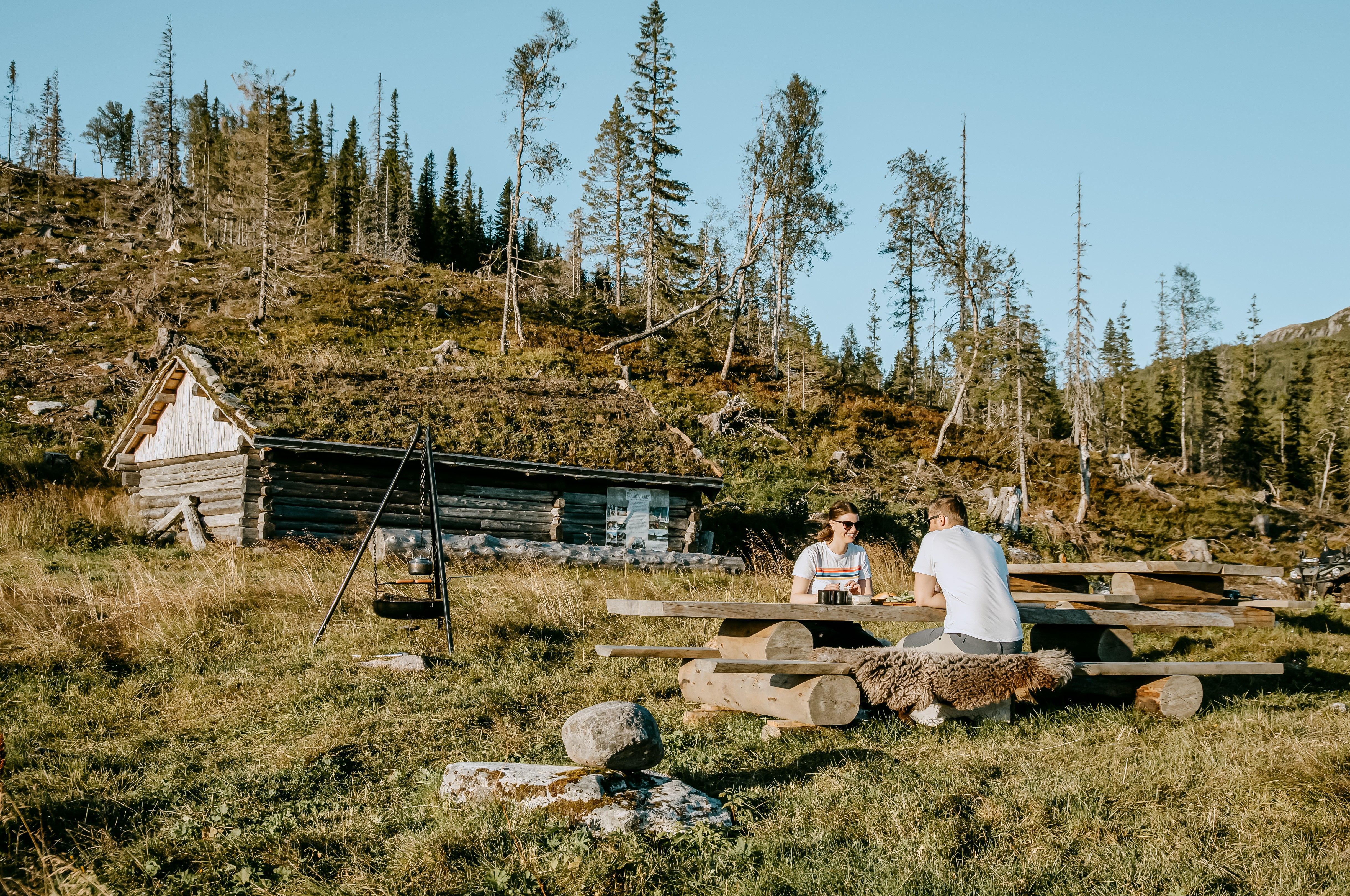 Seterdomen er perfekt innredet til to stykker, men det er fult mulig å ha med to barn. Da setter vi inn to klappsenger slik at også de får oppleve luksus på fjellet. Alt er ferdig oppreid til dere ankommer plassen. Toalett finner dere inne i seterbua, den eldste av de tre seterbygningen. Her står et Cinderella gasstoalett som er enkelt og hygienisk å bruke. Er behovet stort for en dusj kan den tas ute i det fri. Da blandes vann til riktig temperatur i et gammelt melkespann, og en enkel pumpedusj brukes som dusj. Enkelt, men det fungerer helt fint. Opplevelsen av å dusje ute i det fri uten innsyn fra andre mennesker er fantastisk.
