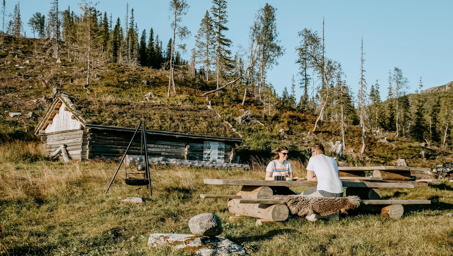 Fra parkeringsplassen følges en 1,5 km lang traktorvei opp til seterdomen, men en stigning på 200 høydemeter. Vi tilbyr skyss for de som ønsker det mot et tillegg på kroner 300,- i prisen. Velg mellom å ha med mat selv, eller bestille en matpakke til oss. Inne i seterfjøset er det et gasskjøleskap og to kokeplater drevet av gass. Det er ikke innlagt strøm og vann på stedet. Drikkevann kan bestilles eller hentes i bekken like ved setertunet. Vann til andre gjøremål samles i en vanntønne ute på setertunet når det ikke er frost ute. I vinterhalvåret frakter vi alt av vann opp. Det er en bålpanne tilgjengelig til bruk, samt et stort kokekar som brukes til oppvarming av rent vann. Andre kjøkkenredskaper må tas med selv dersom ikke annet avtales. Toalettpapir og tørkepapir er inkludert i prisen, dette er også bruk av gass. Leie av primus mulig.