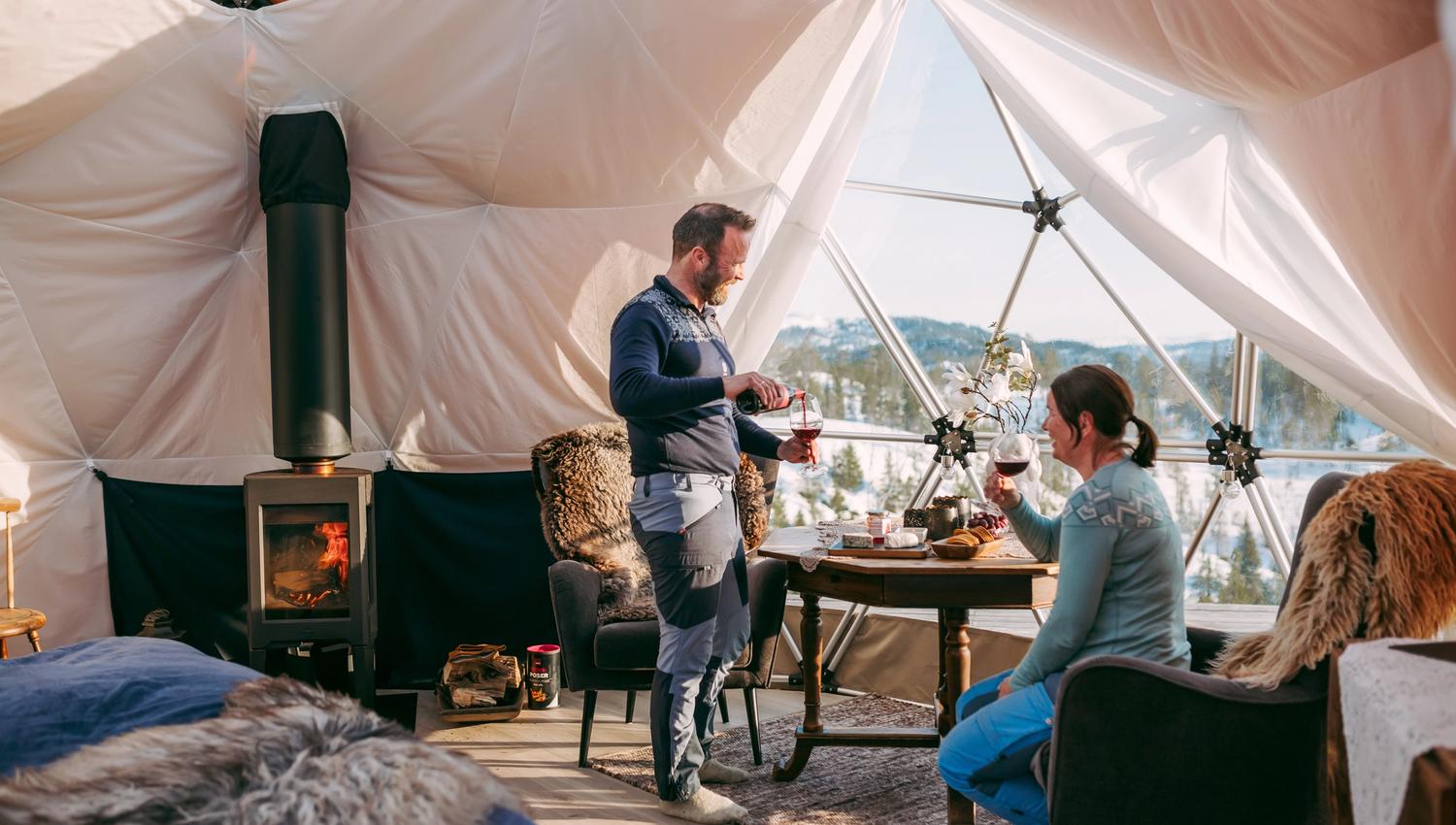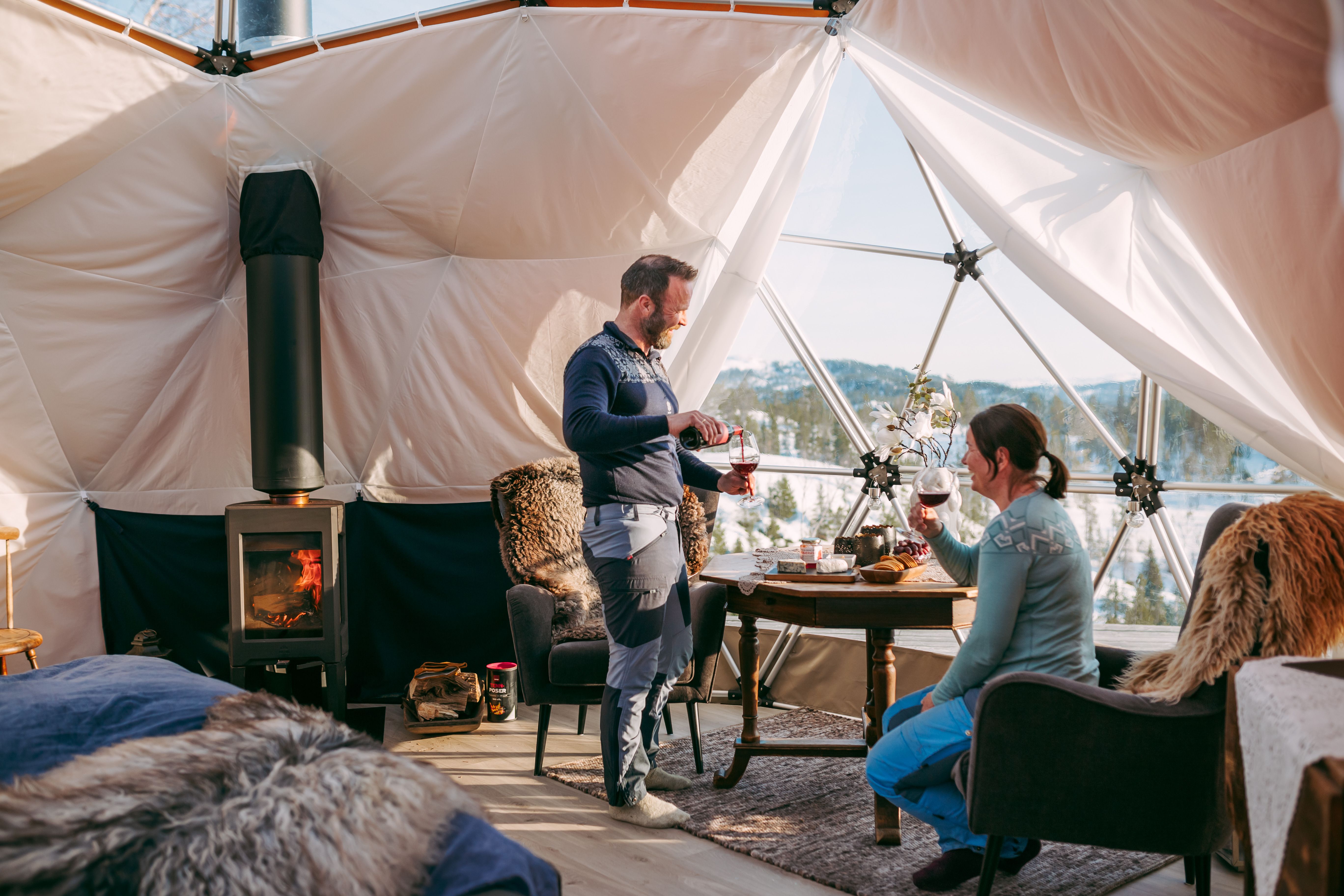Overnatting på et historisk setertun der du har tilgang til alle bygningen på tunet, inkludert en Arctic Dome, seterdomen, som er innredet med ei stor og god dobbeltseng, to godstoler, bord og andre småmøbler som er nyttig å bruke. Seterdomen varmes opp med en vedovn, komplimentert av en gassovn som står inne i domen. Her kan du nyte en kopp nykvernet kaffe på senga, lage deg god mat inne i seterfjøset, ta deg en skogstur eller en topptur opp til Skarlandsfjellet. Et godt alternativ til dette er å nyte stillheten og roen rundt en bålpanne og lage god gammeldags bålkaffe. Alt dette i historisk omgivelser, i nærhet til naturen og kulturen som setertunet formidler.