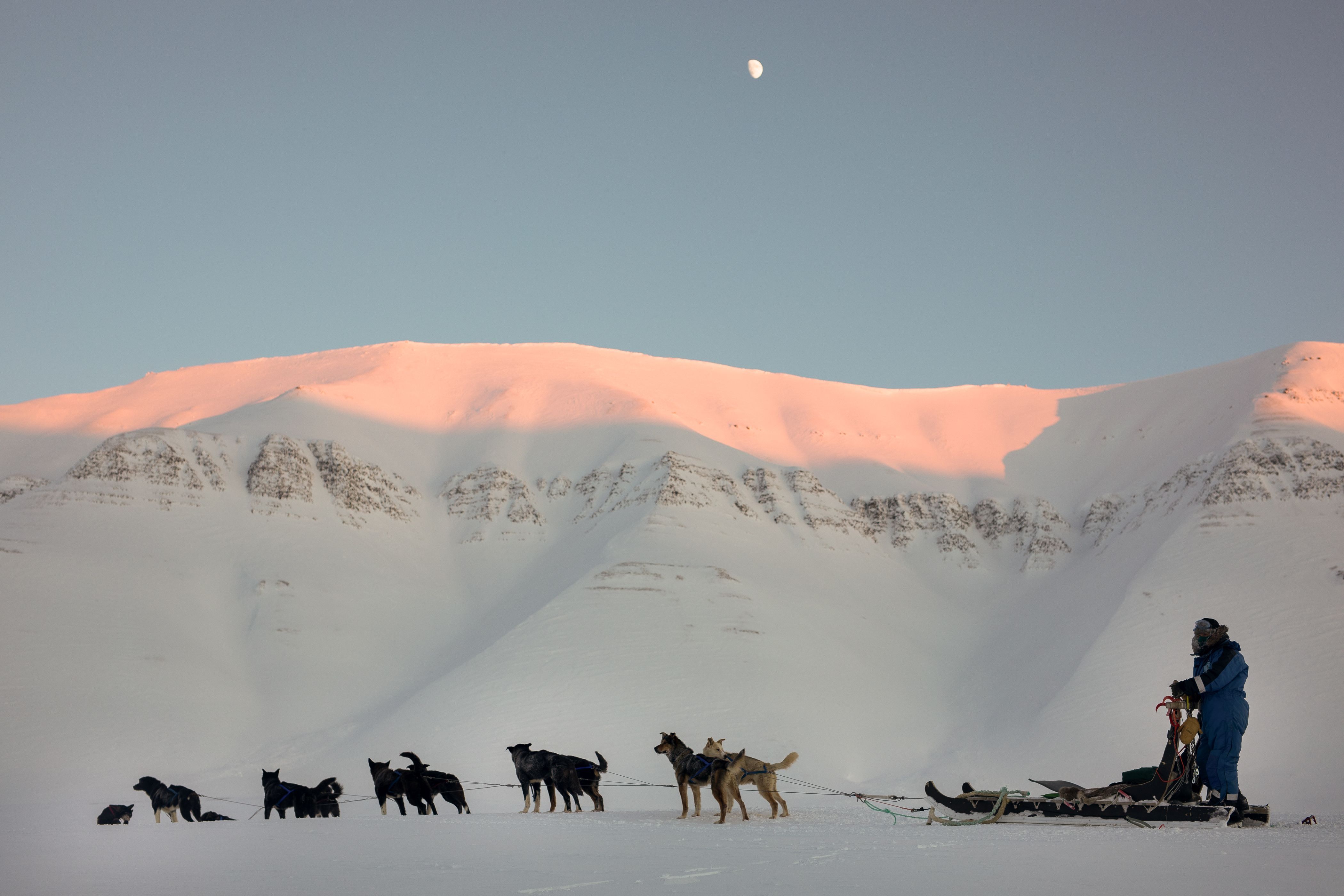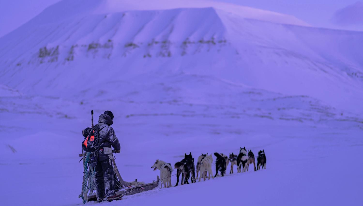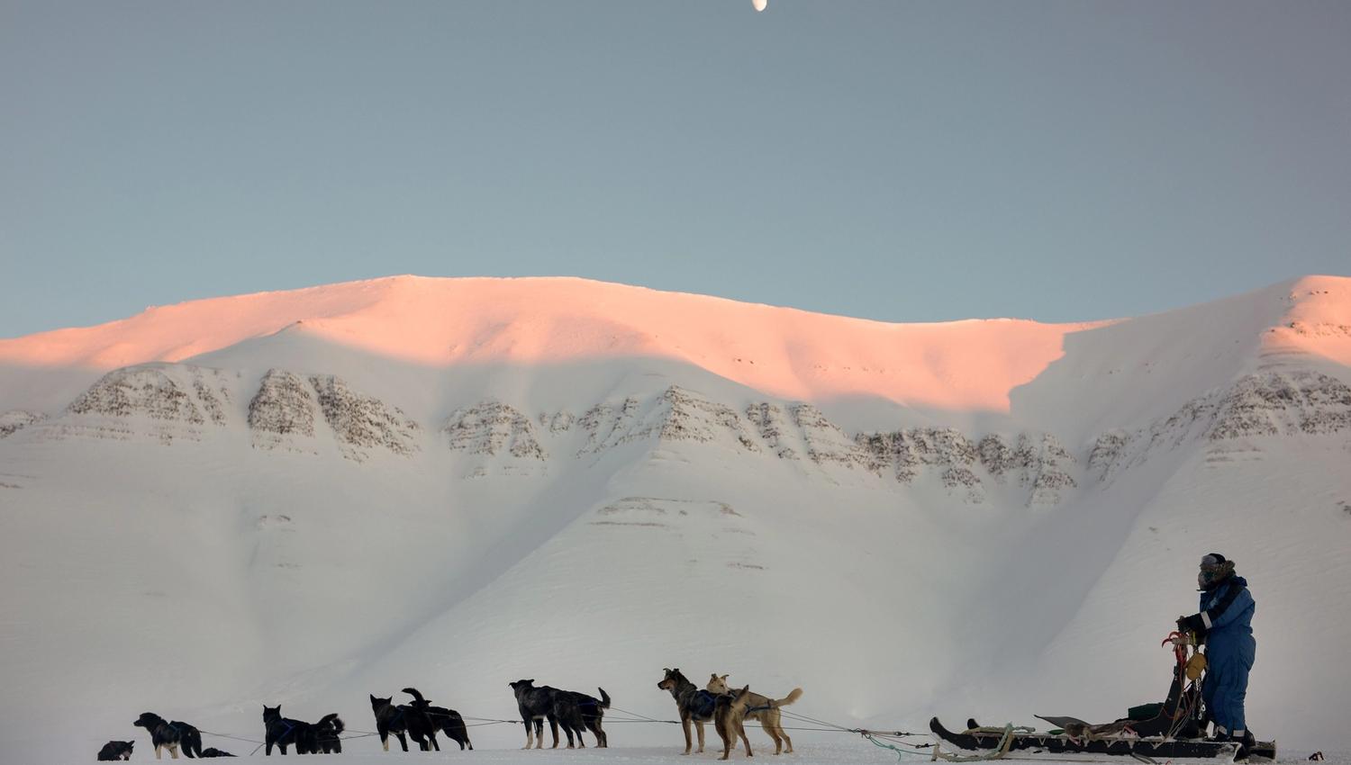 Bli med på hundesledetur gjennom Bolterdalen og vakkert morenelandskap før vi når destinasjonen Scott Turner breen – Landskapet og tempoet varierer