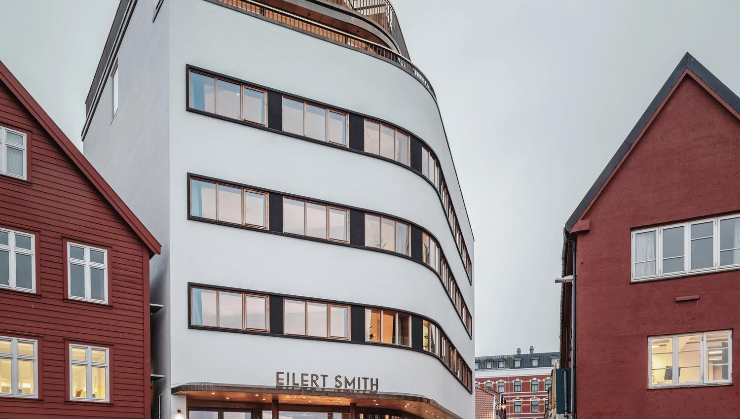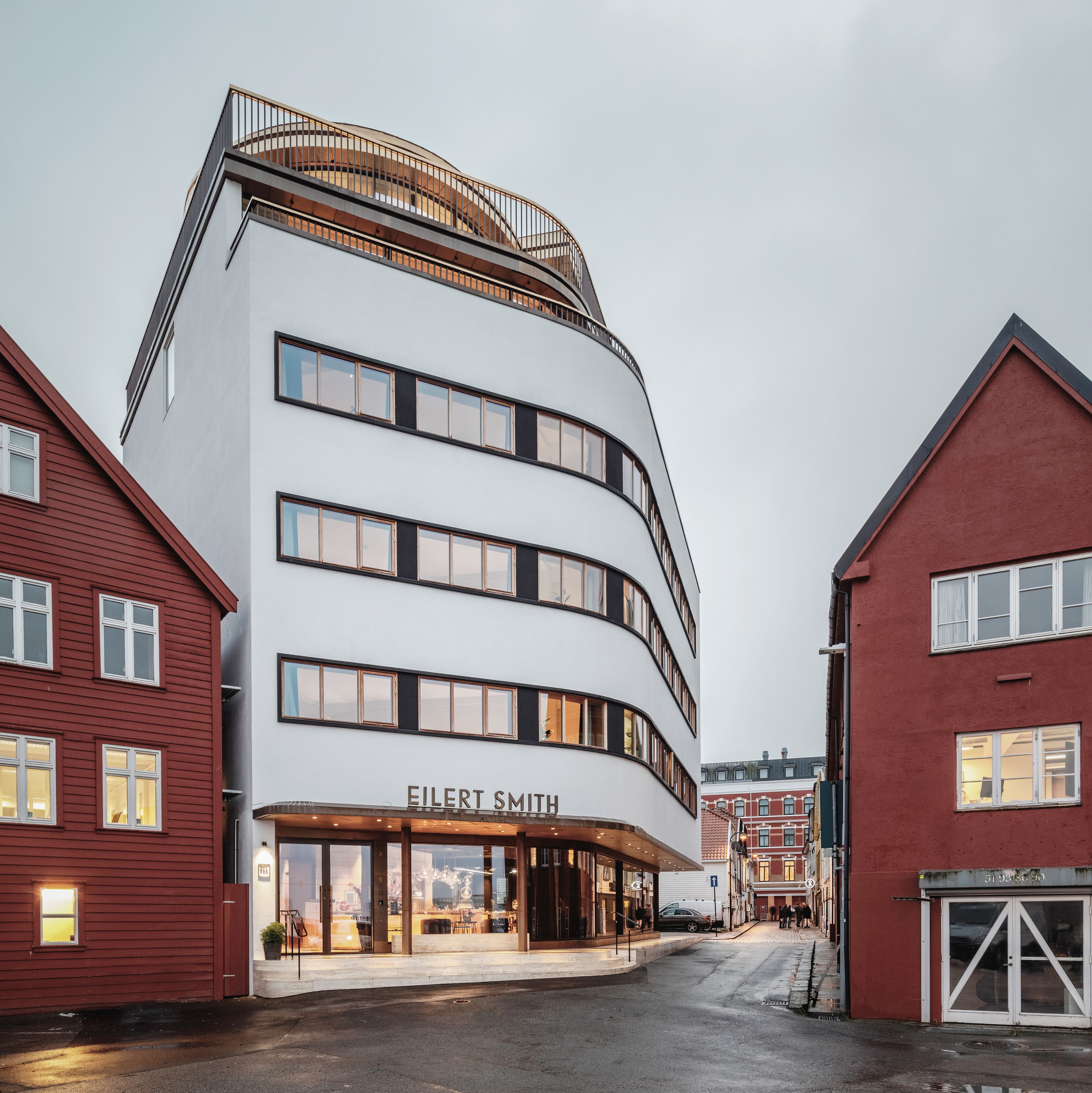 Hotellet tar navnet fra arkitekten som tegnet bygget, herr Eilert Smith. Bygningen ble tegnet i 1937, i funksjonalistisk stil som sprang ut av modernismen. Ren og elegant uten overflødige detaljer eller pyntegjenstander. De hvite betongveggene har horisontale rader med vinduer på rekke. På bakkenivå tillater vinduer i full størrelse lys inn i det som tidligere var utstillingslokalet for frysere og varmeovner i sin tid. Form følger funksjon i denne bygningen, og arkitekturen understreker funksjonalitet og effektivitet som idealer i moderne tid. Et høyt og smalt tårn kronet med en klokke illustrerer dette godt. Selv om bygningen er dristig og moderne, gir de buede formene og avrundede hjørnene det nesten et humant uttrykk. Hotellet er like tidløst og moderne selv om Eilert tegnet det for mer enn 80 år siden. Området utenfor hotellet er lunt og hyggelig med utsikt til fjorden, og avslører Skagen-nabolaget som en sjarmerende del av Stavanger.