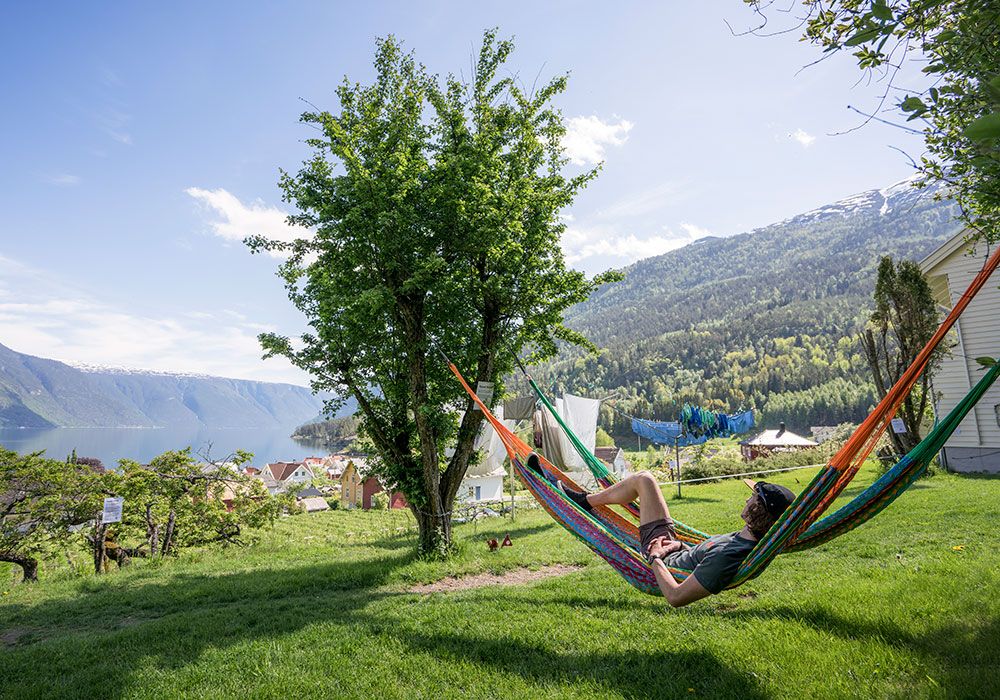I hagen finn du hammock, slakk line og ein ni-hols crocketbane. Om kveldene kan du, om du kommer i rette tid, bli med å gi mat til lam. I resepsjonen finn du friske jordbær plukka frå hagen og er du riktig heldig har vi ekstra egg frå hønsa våre.Høyrast det ut som ei lite paradis?