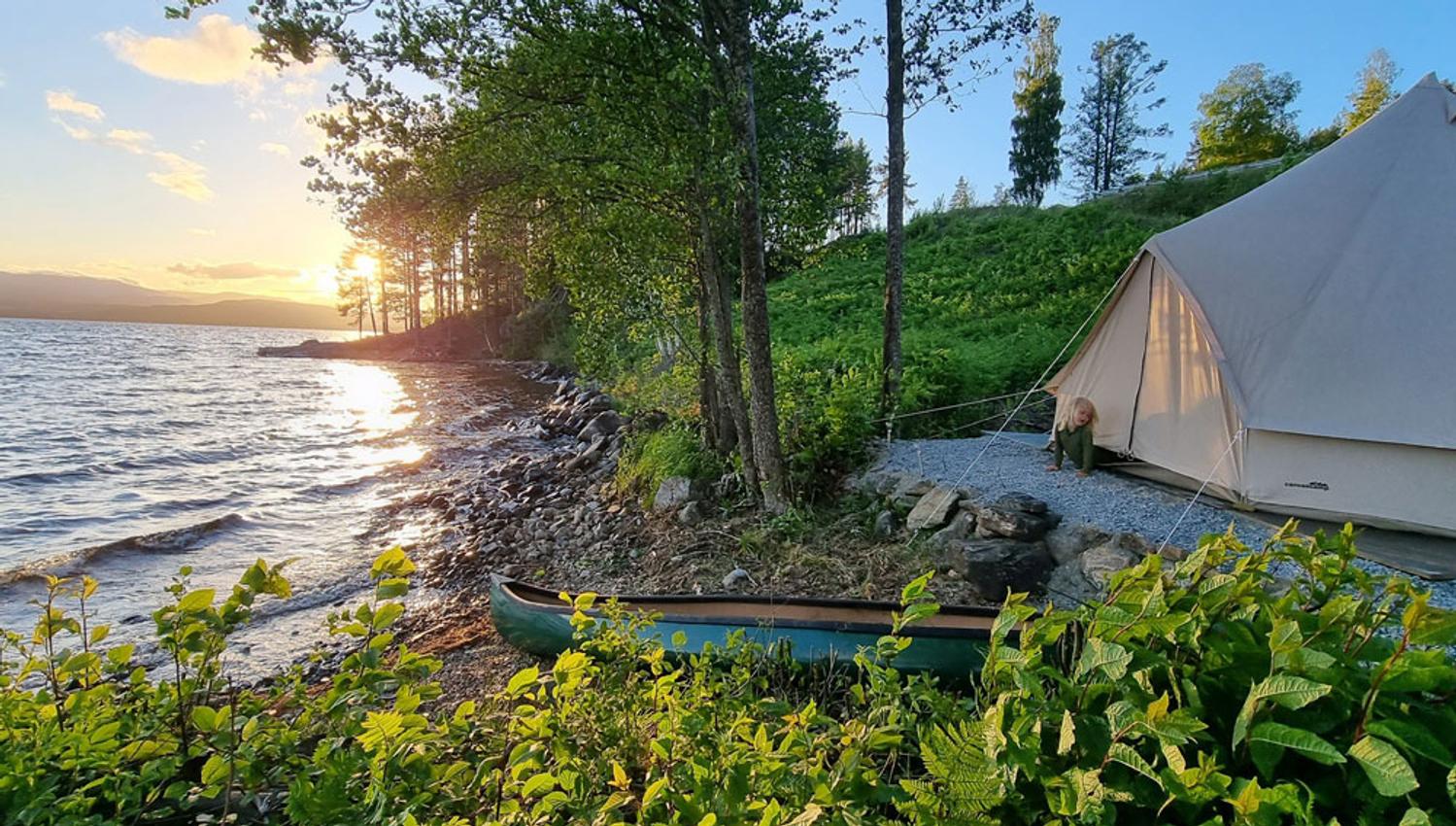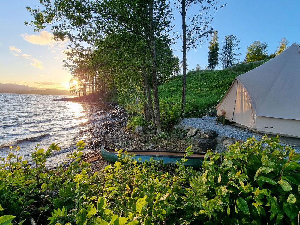 På Bolkesjø Gaard på Notodden i Telemark kan du nå overnatte i eksklusivt glamping telt rett i vannkanten ved det vakre badevannet Follsjø. Her kan du starte dagen med et morgenbad, fortsette med soling, fiske og grilling, for så å avslutte det hele med sauna og solnedgang. Kan det bli bedre?!
