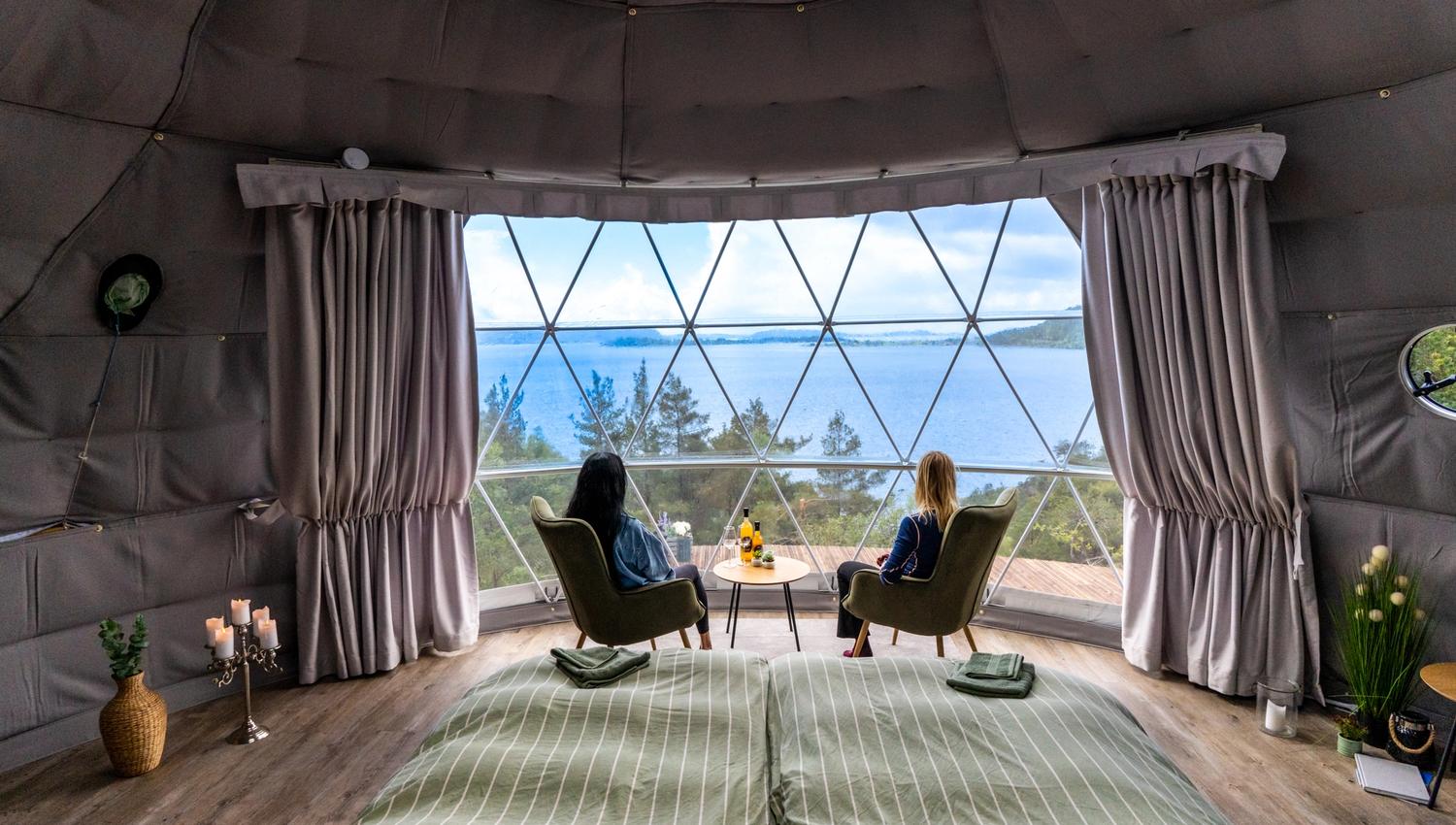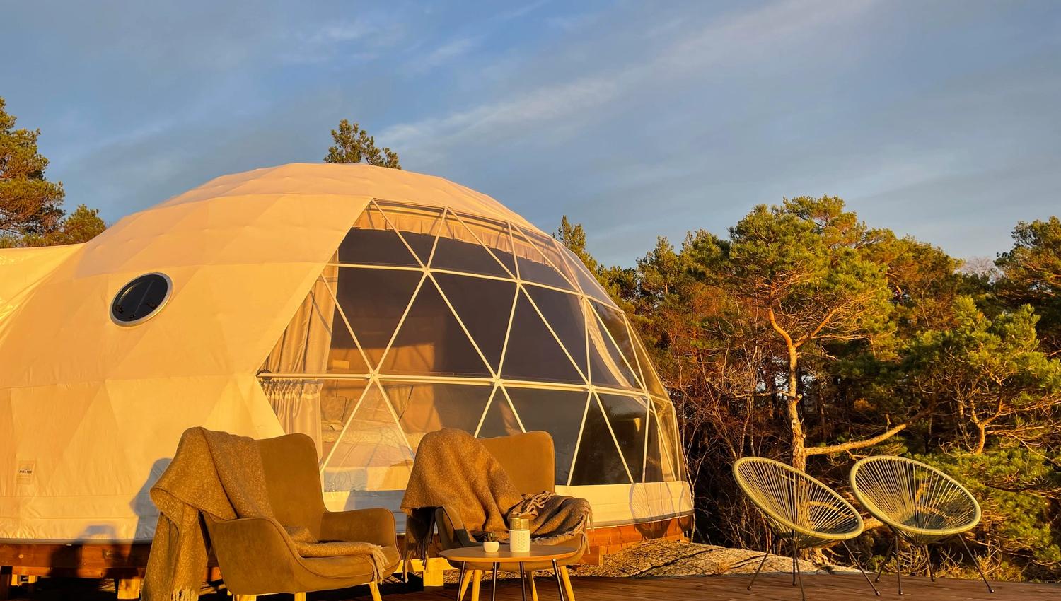 Hos Tveita Adventure på Tveita i Suldal kan du overnatte i dome med panoramautsikt over ryfylkefjordene.