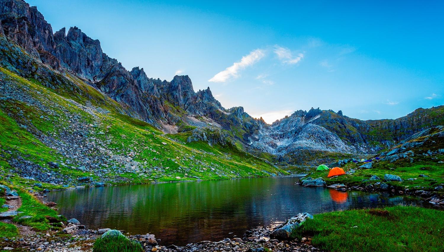 Molladalen er naturligvis ikke en fjelltopp, men for å oppleve fjelltoppene nedenfra er den uansett uovertruffen. Molladalen er ei gryte omkrinset av spektakulære tinder – gjerne kalt Molladalstindane - på alle kanter. Berømte topper som Jønshornet, Randers Topp og Mohns topp er blant de som kan nytes fra dalen. Korteste vei til Molladalen går fra Melbøsætra/Barstadsætra innerst i Barstaddalen. Herfra følger du merket rute langs Molladalselva, videre bratt opp mellom Nyfjellet og Svinetind, opp til Storevatnet (774 moh.), som er det største vannet i Molladalen. Dalen innbyr til teltovernatting med fiskemuligheter i vannene. Fra Molladalen kan du gå videre sørover Molladalsskardet (990 moh.) til Ytre Standal. Eller over fjellryggen vest for dalen, forbi Brillevatnet og videre ned i Romedalen, gjerne med en avstikker opp på Hallehornet (900 moh.) som bokstavelig talt luter seg ut over Romedalen og Steinstøylen. Sesong: Mai- oktober Lengde og høydemeter: 3 km. 570 høydemeter. Vanskelighetsgrad: Krevende Tidsbruk: 2,5 timer. Kart: Turkart Sunnmørsalpane i 1:50 000 fra Nordeca. Adkomst: Buss (www.fjord1.no) eller bil til Barstadvik, der du bryter av og følger veien innover Barstaddalen (det går bomvei på begge sider av dalen) frem til parkeringsplassen ved Melbøsætra/Barstadsætra. Overnatting i nærheten: Hotell Ivar Aasen i Ørsta eller en av de mange hotellene i Ålesund-regionen. Spesielle forhold: Det henger en kjetting på det bratteste punktet langs Molladalselva. Dette området kan være skummelt når det er isete.