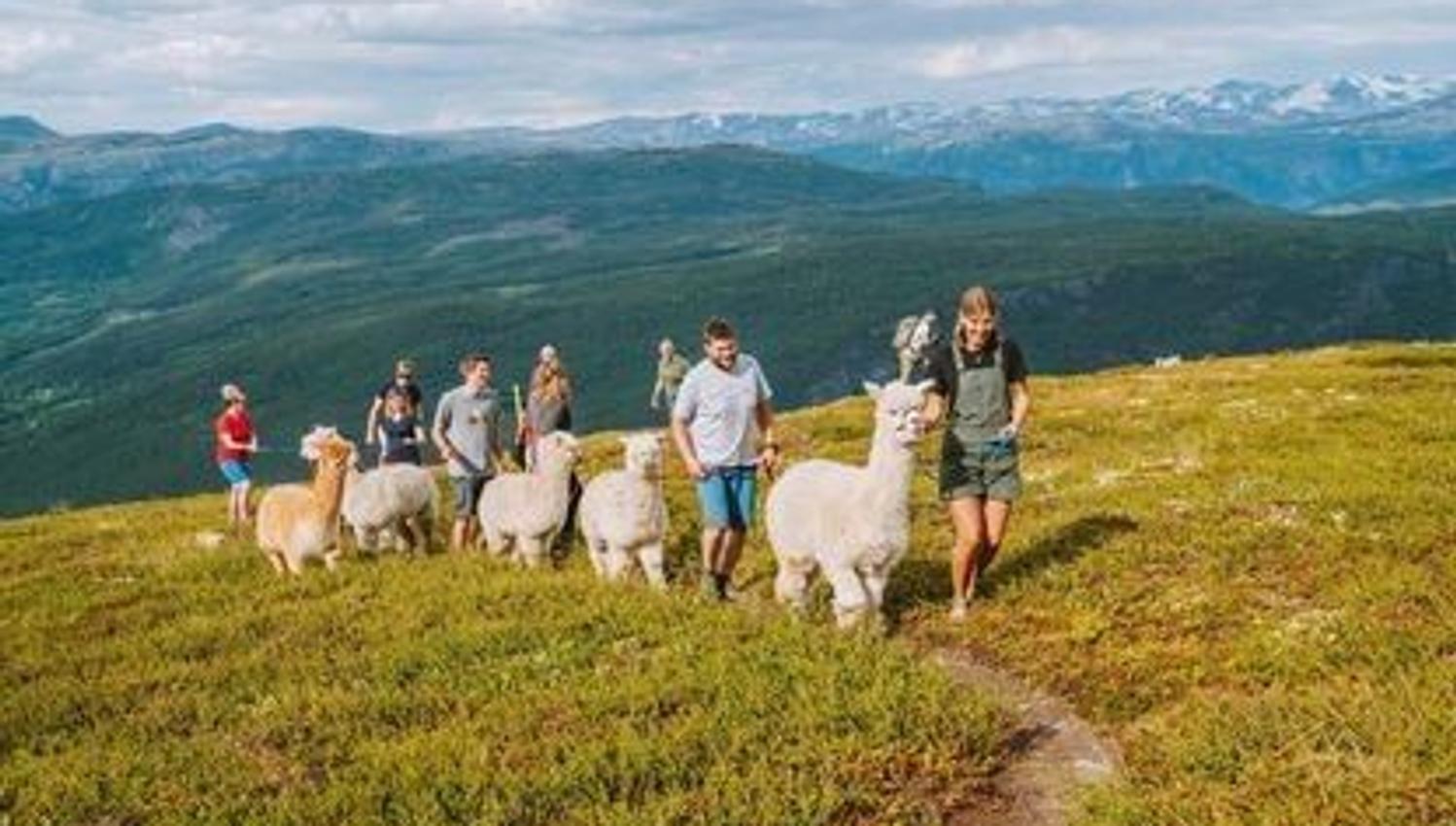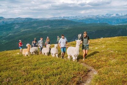 Blant opplevingane finn du alpakkavandring i seterlandskapet rundt Hylja, der tempoet er roleg og fokuset ligg på nærvær, natur og stillheit.