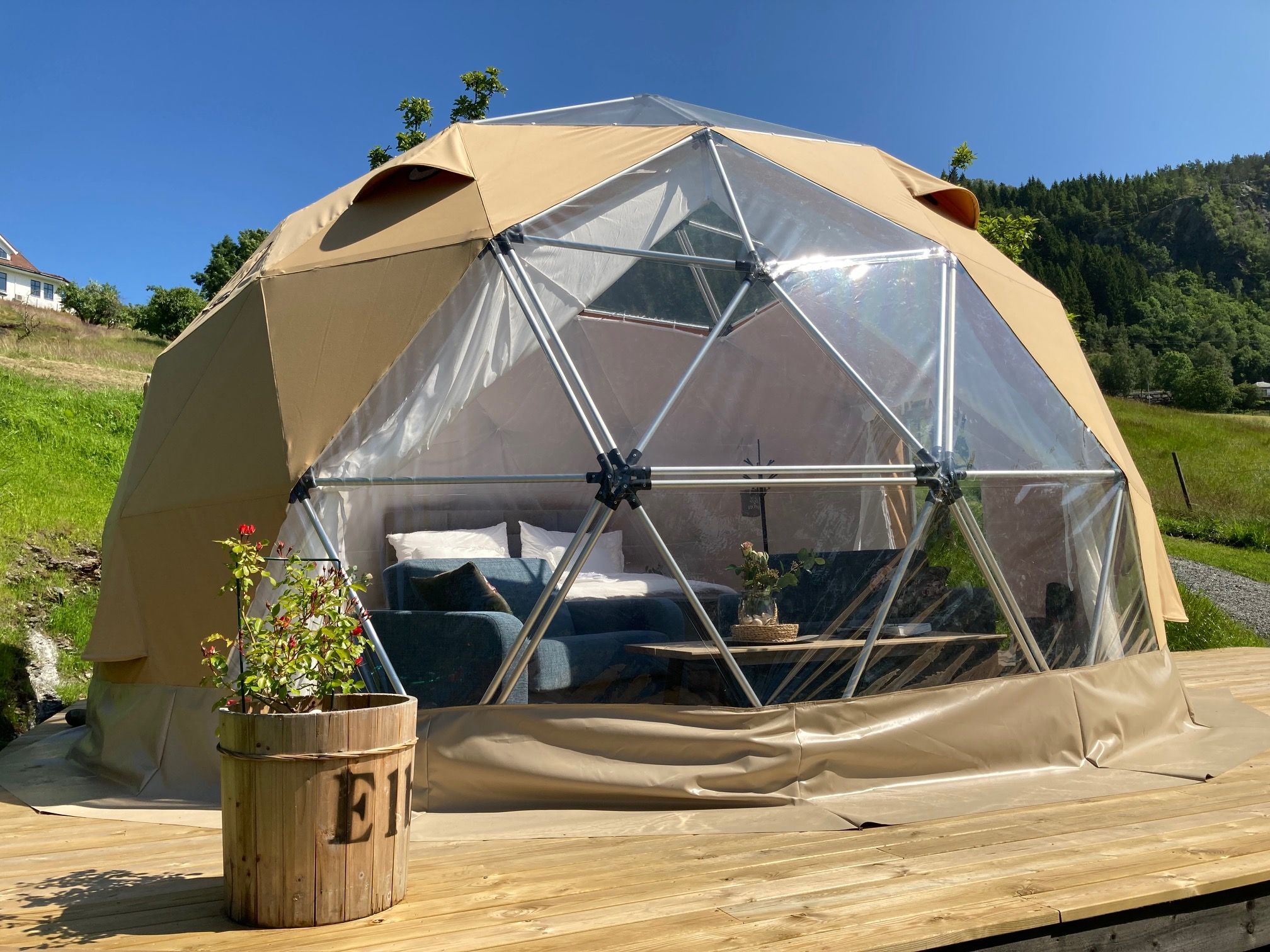 Det er 1 dome (23m2), med kapasitet til 4 personer. Domen er innredet med 1 dobbeltseng og 2 lenestoler som kan gjøres om til enkeltsenger. Domen holdes varm på kalde dager med en liten ovn i domen. Det er tilrettelagt med fasiliteter for utendørs matlaging, kombinert med kjøleskap inne i domen.