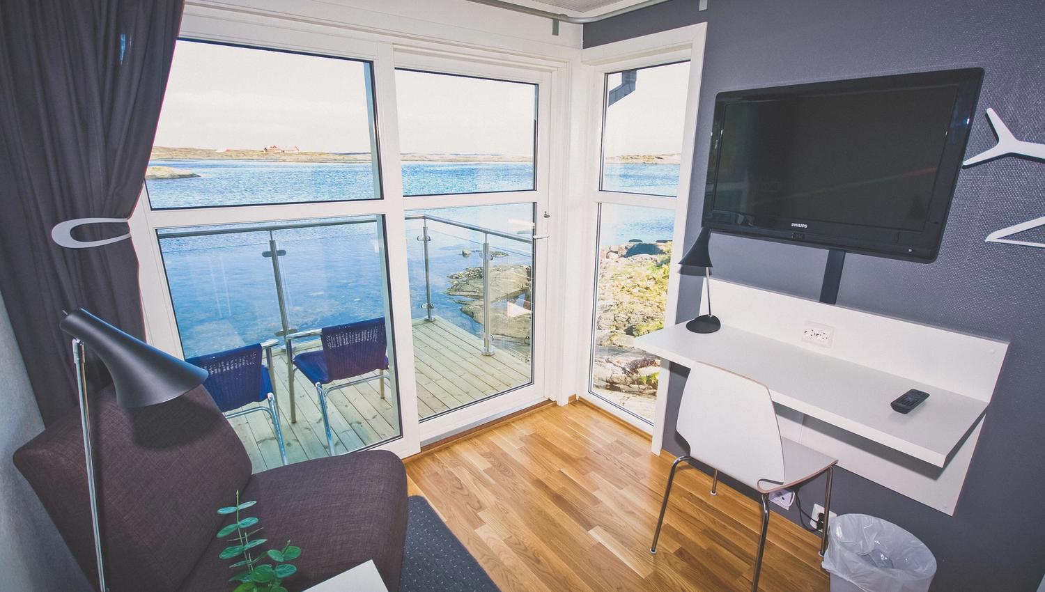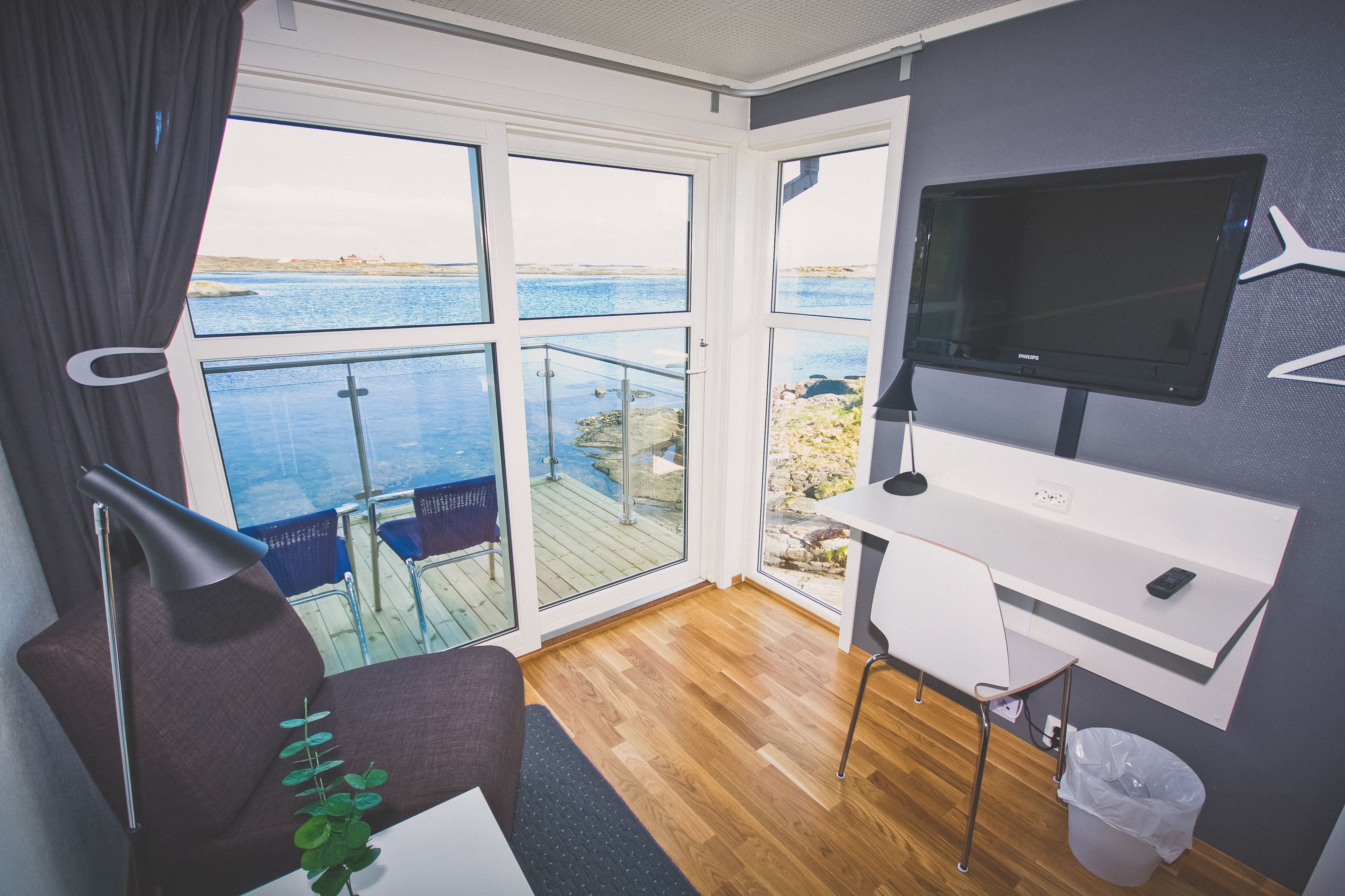 Rorburommene er små hotellrom i rorbuer og ligger helt nederst ved sjøkanten.