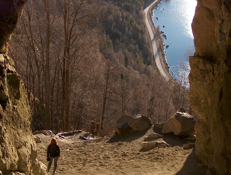 Heile vegen opp til Tjovhola er bratt, men er grei å gå i tørt skogsterreng. Tjovhola er skapt av naturen – med litt hjelp av menneske. Ein har tatt ut mineralet flusspat i samband med koparverket i Åraksbø i gamal tid. Opninga er 15 meter brei og 12 meter høg, og botnen skrår bratt oppover mot taket, rundt 30 meter innover. Gamle segner fortel om tjuvar som heldt til her. Frå hola er det flott utsyn over fjorden.