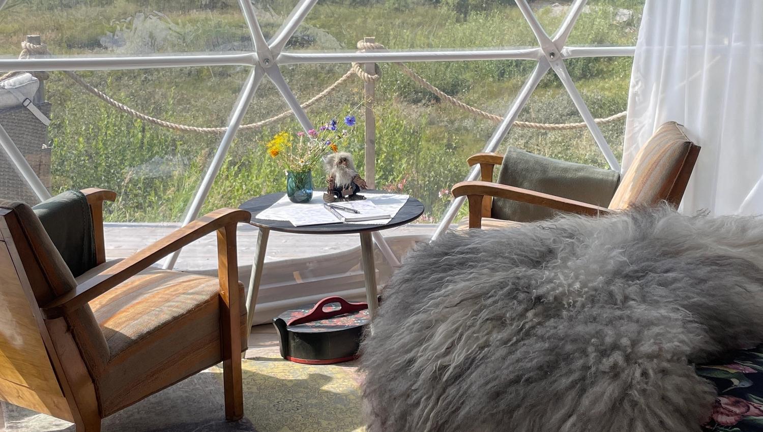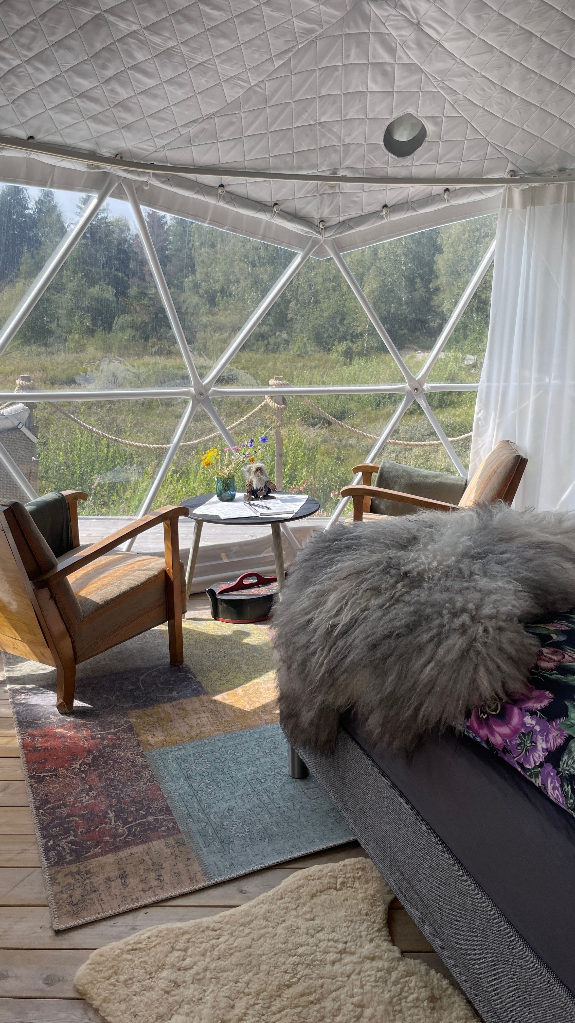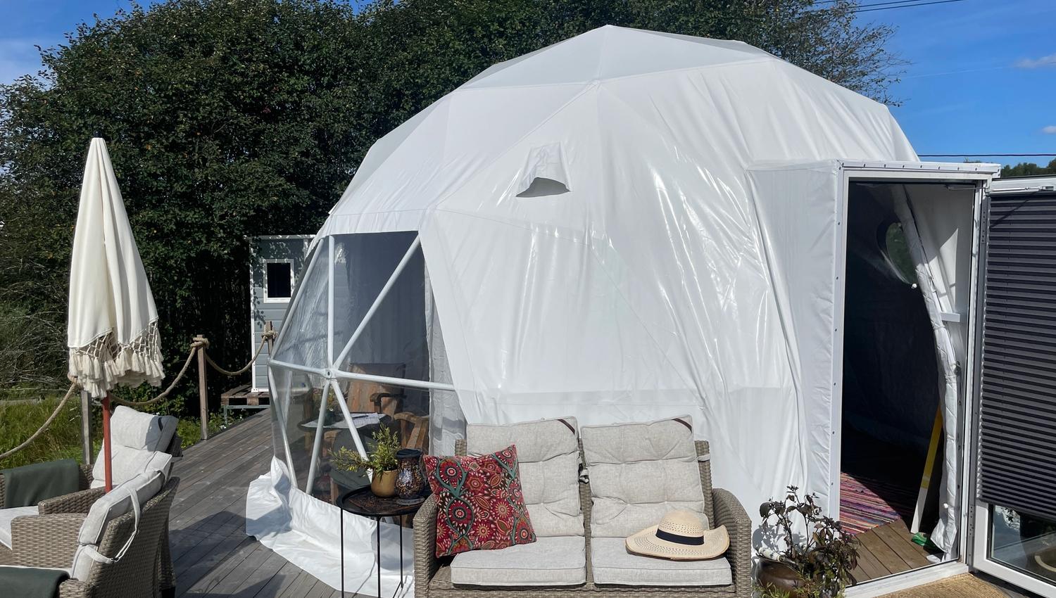 Velkommen til vår lille perle på landet - en dome hvor det er plass til 2 personer. (muligheter for en ekstra seng for en ekstra person.)