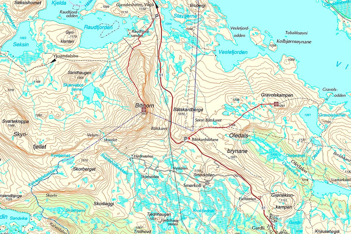 Turen opp til toppen av Bitihorn er en middels krevende topptur med storslått utsikt til Jotunheimen og store deler av Valdres.
