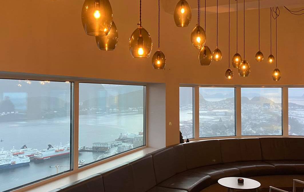 Fjellstua 418 ligger på toppen av Aksla med utsikt over Ålesund, Sunnmørsalpane og havet – et ikonisk serveringssted der mat og omgivelser møtes.