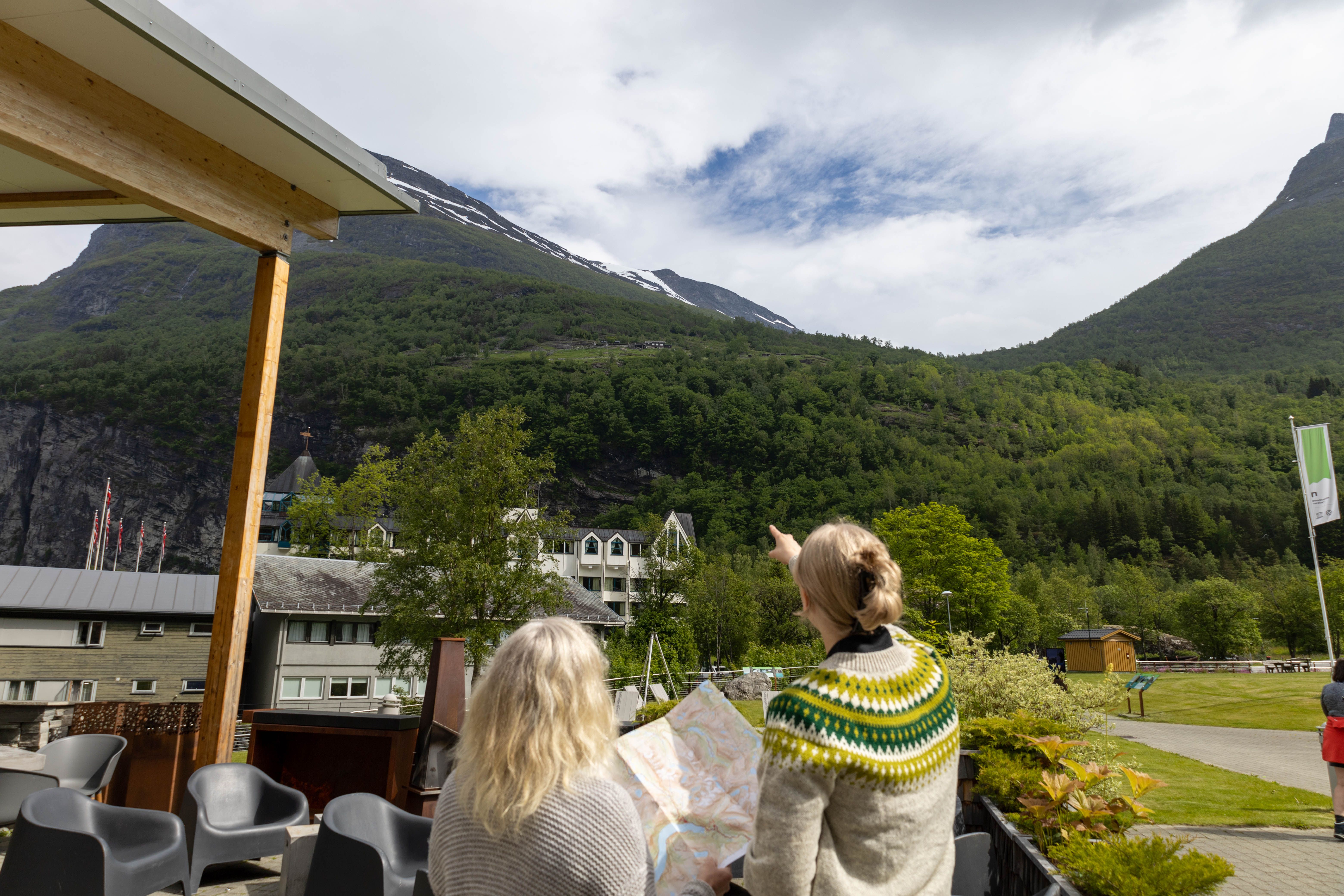 Heilårsopen turistinformasjon med serviceinnstilte tilsette og informasjon om kva du kan sjå og gjere når du er i Geiranger.